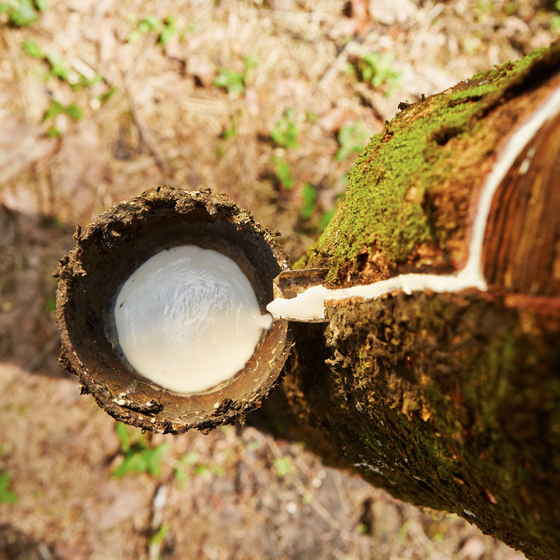 The main component of MIRUM® vegan leather is natural rubber, aka rubber tree sap.
